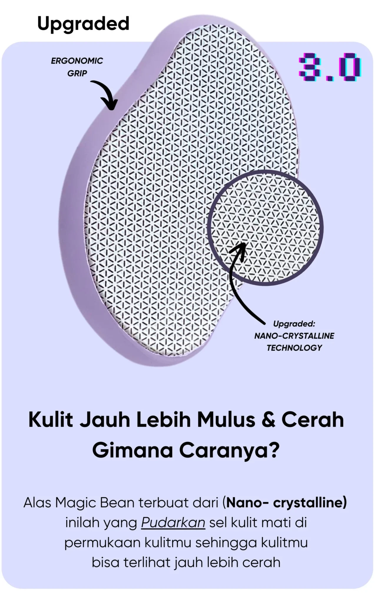 Karena permukaan Bean terbuat dari kaca kristal yang tidak tajam, ini malah mencegah iritasi kulit & Chicken skin (bintik-bintik seperti kulit ayam) akibat pisau cukur atau waxing